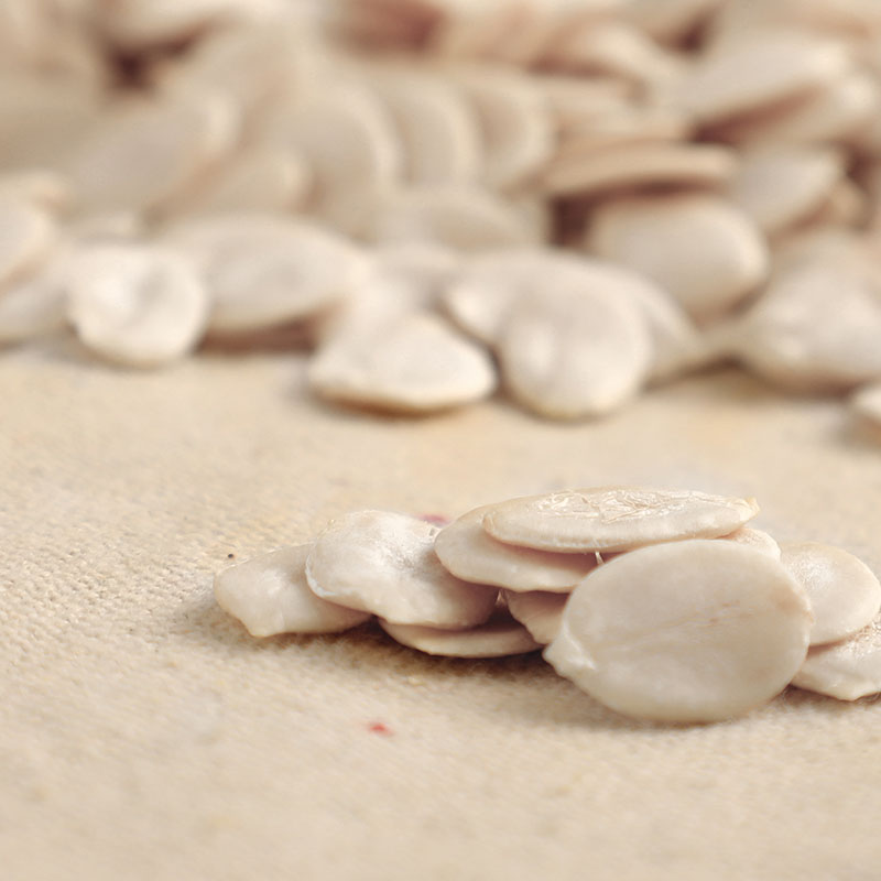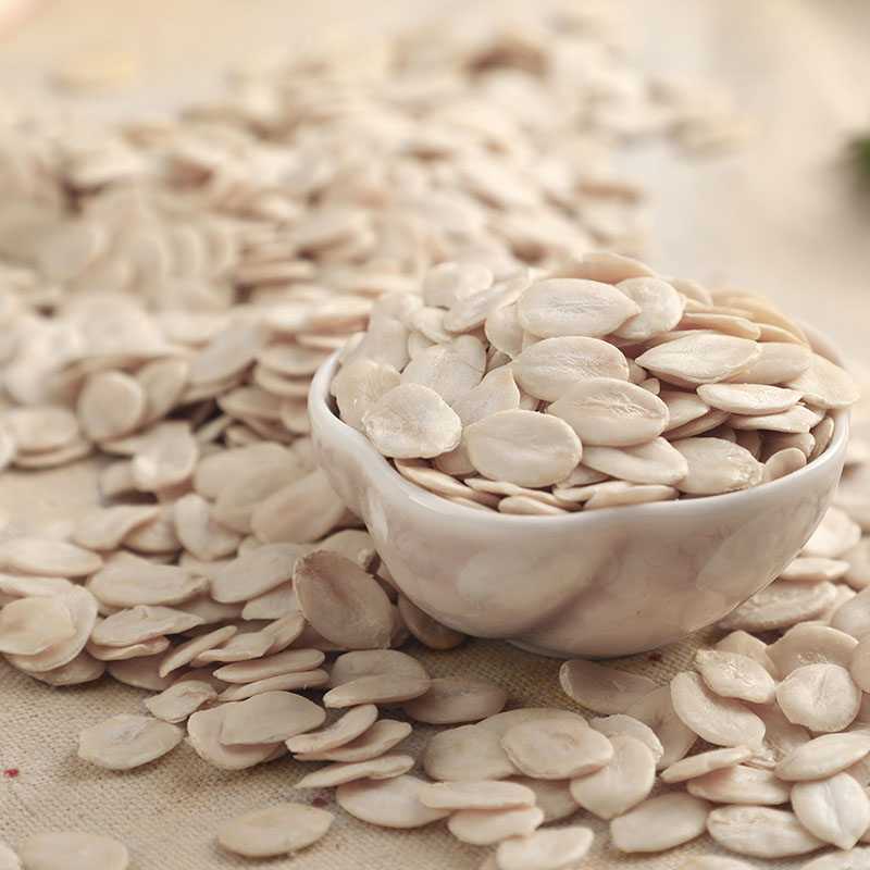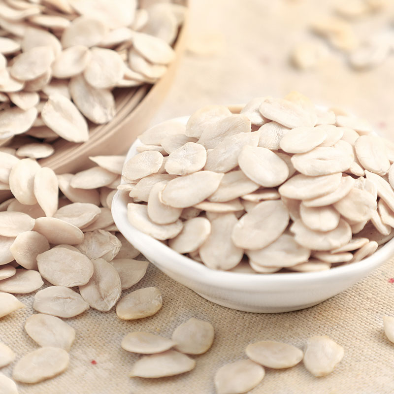 選西瓜籽進(jìn)行去殼加工,產(chǎn)品成乳白色,籽仁甘甜