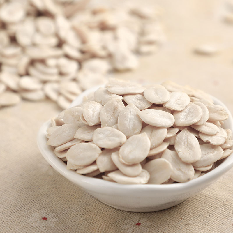 選西瓜籽進(jìn)行去殼加工,產(chǎn)品成乳白色,籽仁甘甜
